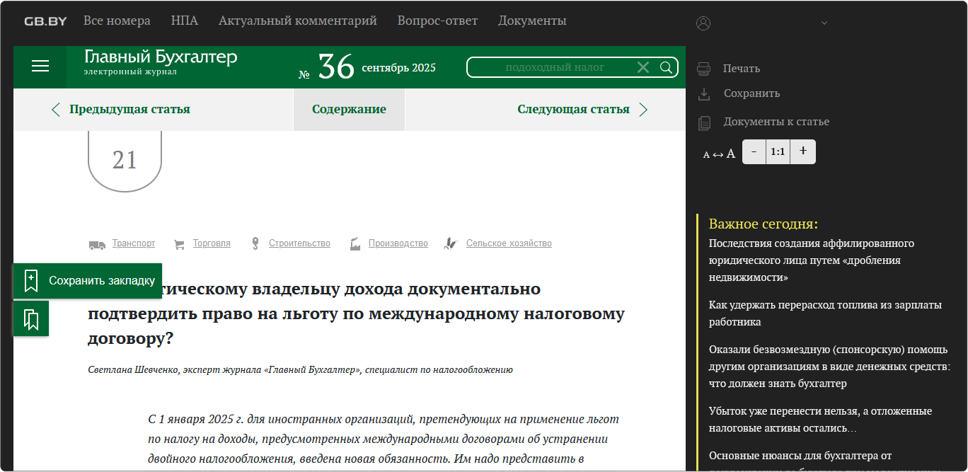 Чтобы сохранить статью из журнала «Главный Бухгалтер» нажмите кнопку «Сохранить» на черном поле справа от статьи.