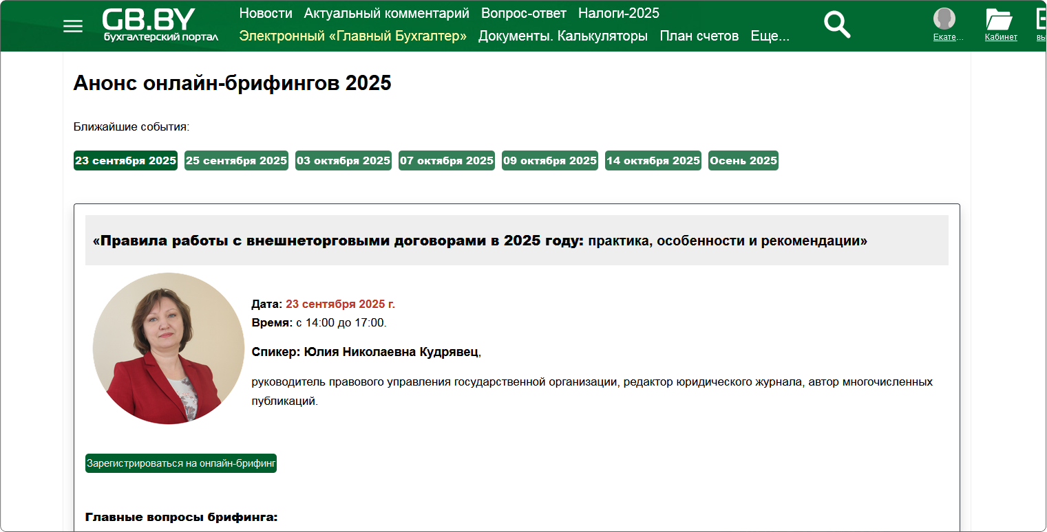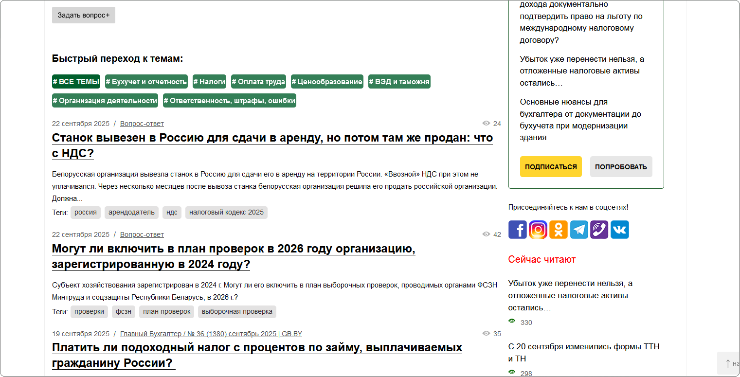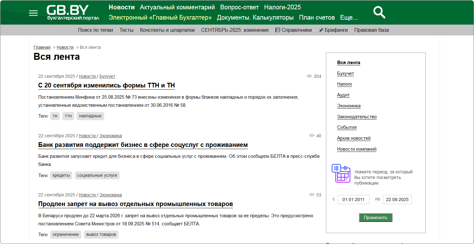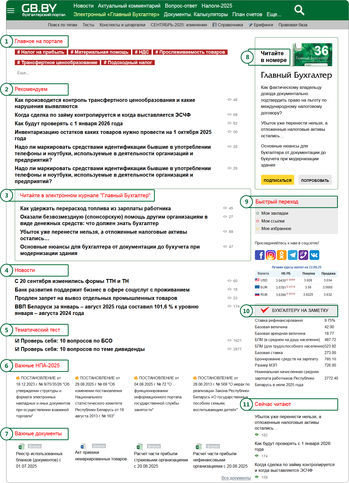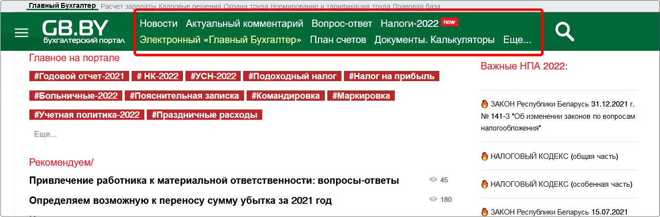 Главная страница - это дайджест для бухгалтера с постоянным обновлением.