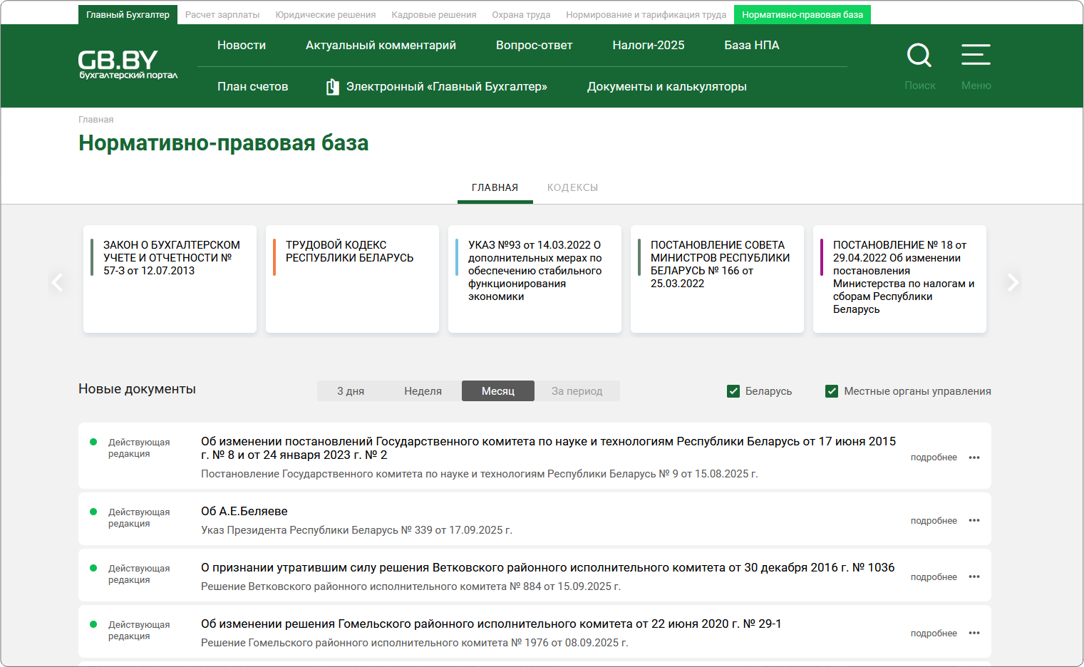Читая материалы электронного журнала «Главный Бухгалтер» и портала GB.BY Вы можете переходить от аналитического материала к нормативному по ссылкам в 1 клик, а также осуществлять поиск необходимых НПА в самой базе.